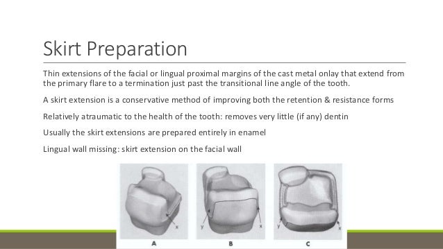 II cavity preparation for use with dental amalgam in 1982. This preparation, which involves accessing caries by the facial approach, followed the instrumentation sequence used for Class III preparations. When first presented, the facial slot preparation was considered ultraconservative because it allowed the most direct access to caries. Class 2 slot preparation Matrix bands and retainers. Contour, insert and place wedge. Purpose: Restoration of proximal contact. Types: Tofflemire, T-band, compositight. Condensing and Carving of Amalgam. Using an amalgam carrier, add increments and condense using positive finger rest. Overfill prep and begin to carve and burnish the.
